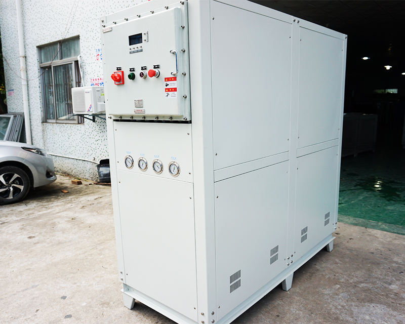 由于冷水機(jī)組有時(shí)候經(jīng)常會(huì)用于一些有易燃粉塵,氣體或者化工領(lǐng)域。此時(shí)冷水機(jī)為了安全的需要在電控、電機(jī)、風(fēng)機(jī)等地方做防爆處理。