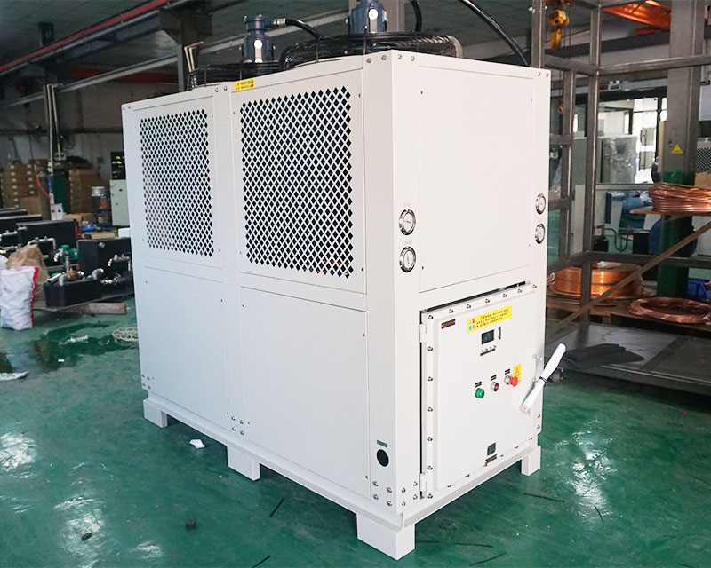 由于冷水機(jī)組有時(shí)候經(jīng)常會(huì)用于一些有易燃粉塵,氣體或者化工領(lǐng)域。此時(shí)冷水機(jī)為了安全的需要在電控、電機(jī)、風(fēng)機(jī)等地方做防爆處理。