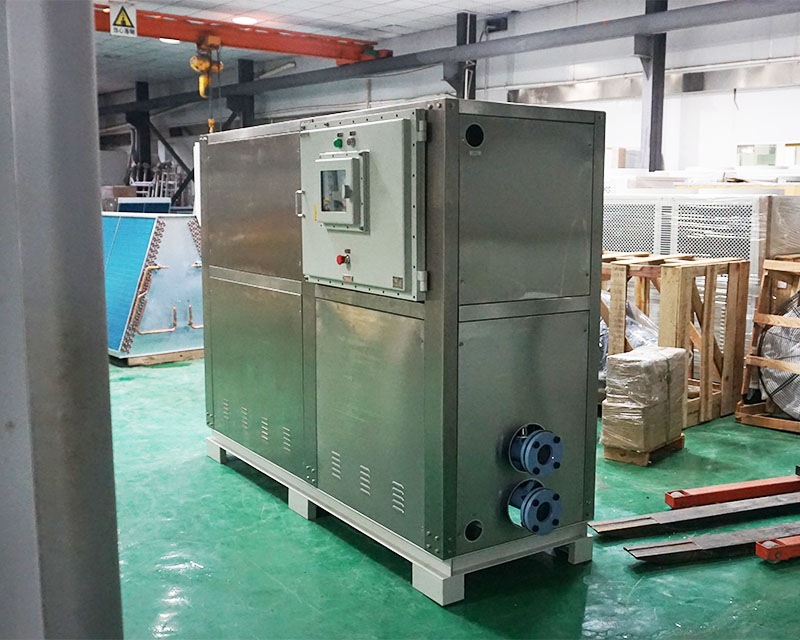 由于冷水機組有時候經(jīng)常會用于一些有易燃粉塵,氣體或者化工領(lǐng)域。此時冷水機為了安全的需要在電控、電機、風(fēng)機等地方做防爆處理。